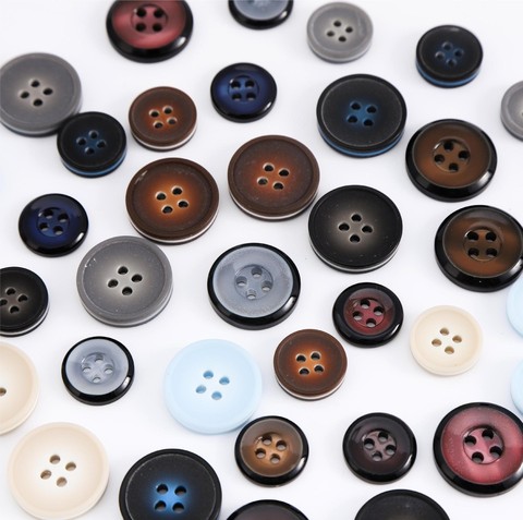 24L-44L Botones de resina de grano de cebada de gama alta | Botones cosidos de 4 agujeros para trajes y abrigos | OEM personalizado disponible